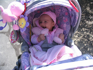 Nayeli had her 5th RSV shot today, she has one more to go! She weighs 13 lbs. 15 oz. She has been puke free for about one week. We hope it stays this way. Nayeli rolled over for the first time in her crib today. She let out this big scream. Shane went running into her room and found Nayeli with her left arm in between the crib bars and Nayeli was on her tummy. Nayeli was not happy and hates tummy time. I told Shane a week ago that when Nayeli rolls over for the first time she will hate it because she hates being on her tummy. I am glad that she hates it in a way so that way I don't worry if she is faced down when she rolls over. We thank God for our daughter and are having fun watching her grow.